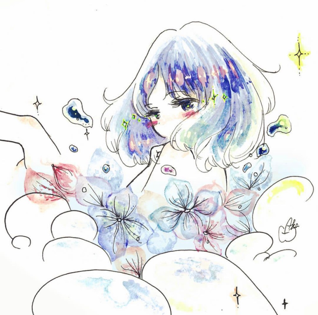 Watercolor Painting :紫陽花ちゃん/ Hydrangea sprite, 2018